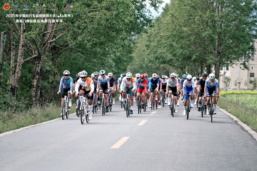 本次比赛有来自北京、天津、福建等20多个地区的900多名骑行爱好者参加,100多支车队用3小时,在31.5公里的美景观赛道驰骋。赛道全程横穿百里油菜花海核心区,其中25公里与环大美青海国际公路自行车赛赛段重合,为选手们带来职业级的竞速体验。骑手们穿行时,一边是金波翻涌的万亩油菜花田如地毯铺展至天际,另一边是祁连山岗什卡雪峰的终年积雪熠熠生辉,“车在花中行,人在画中游”的意境在此刻具象为震撼人心的实景。