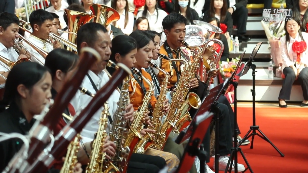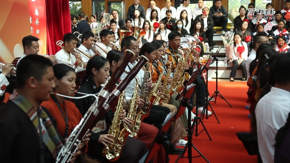 自2020年以来,上海音乐学院持续在青海省果洛藏族自治州开展“文化润边”少数民族艺术人才培养团队工作,目前果洛州青少年管乐团近百人,70%左右的学生来自牧民家庭。果洛州青少年管乐团的成立,为果洛西宁民族中学学生丰富学习体验、实现全面而有个性的发展提供了更多的可能性。